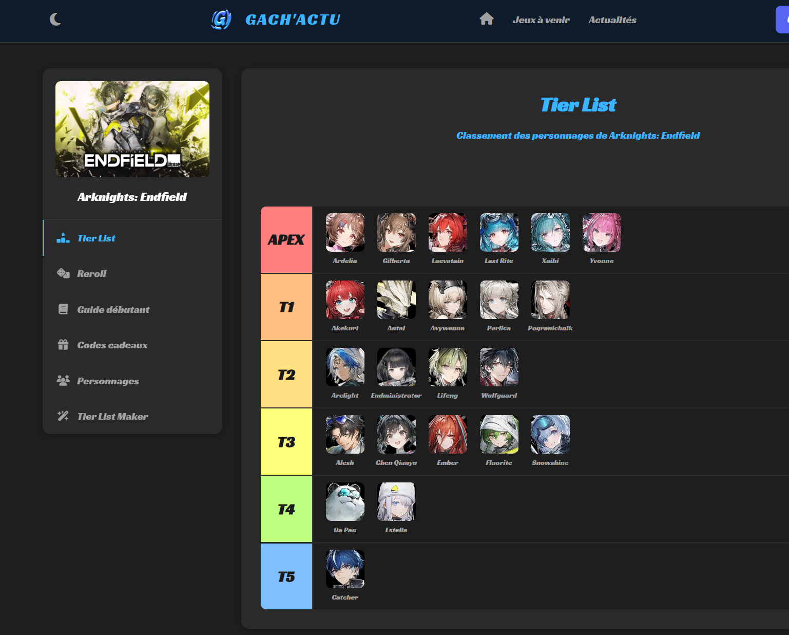 N'oubliez pas : Tous les personnages d'Arknights: Endfield sont jouables si vous trouvez la bonne synergie. Cependant, viser un ou deux personnages du rang APEX ou T1 lors de vos premiers tirages rendra votre progression beaucoup plus fluide.